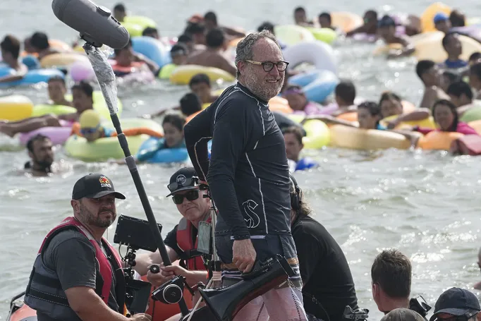 BTS The Meg with director Jon Turteltaub at KFS