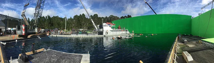 The marine shoot included 29 days (approx.) spent filming on the water in New Zealand, with approximately 50 marine vessels (picture boats, barges, jet skis, etc.) used over the course of production and more than 100 cast and crew members during water filming days.